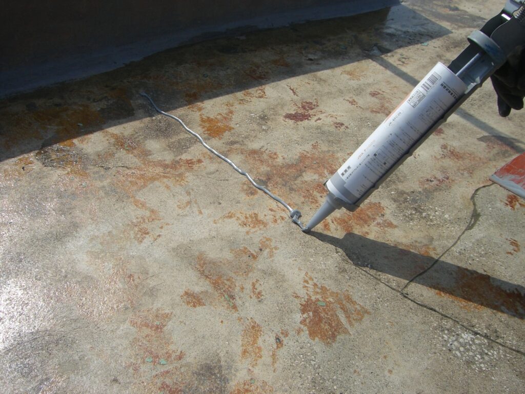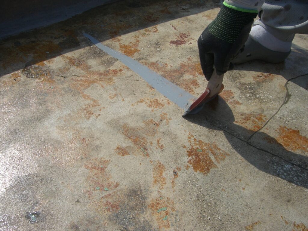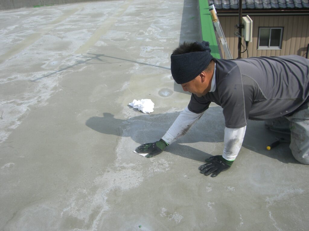 *ひび割れ等の補修をしっかり行います。下地と馴染むようプライマー塗布